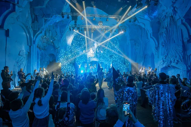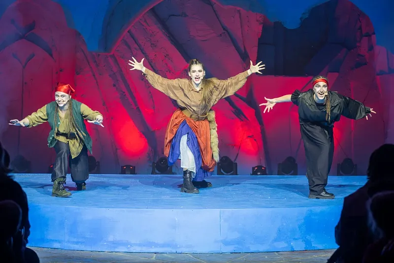 Интерактивное представление позволило юным зрителям стать частью сказки: вместе с Гердой они проходили испытания, укрощали разбойников, помогали растопить сердце Кая и самой Снежной королевы. В финале праздника в Ледяном дворце появился Дед Мороз, превратив действие в настоящий новогодний бал.