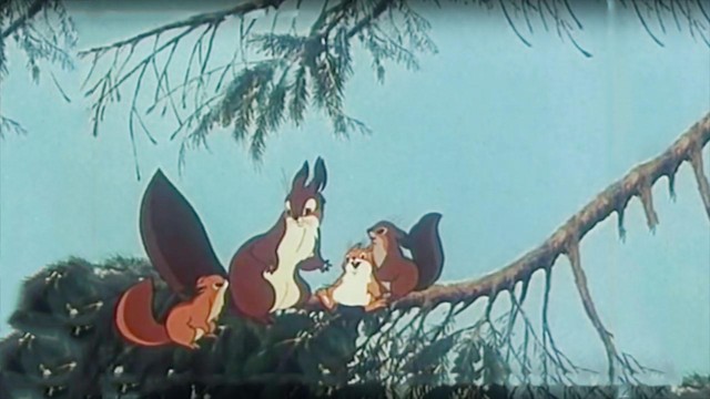 В лесу, где живёт мама-белка с детьми, стало мало шишек и грибов. Бельчонок по имени Белоносый отправляется в другой лес на поиски нового дома для своей семьи, встречая по пути различных зверей.